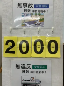 あれから約3年、この度、2025年10月15日をもって、私たちSRIロジテムは新たな金字塔となる「無事故・無違反 2,000日」を達成いたしました!